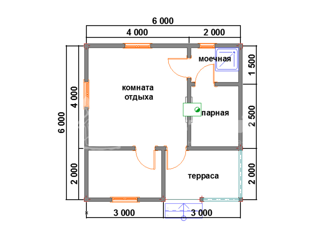 | Двери | Входная: металлическая утепленная (производство Россия) Банные: клиновые Обналиченные с отделкой откосов |
