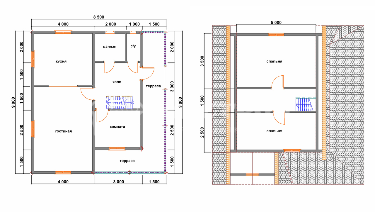 | Сруб дома | Профилированный (строганный) брус 90х140 мм (140х140 мм / 190×140 мм). Атмосферной сушки. Тип бруса на выбор: полукруг (под блок-хаус) или прямой |