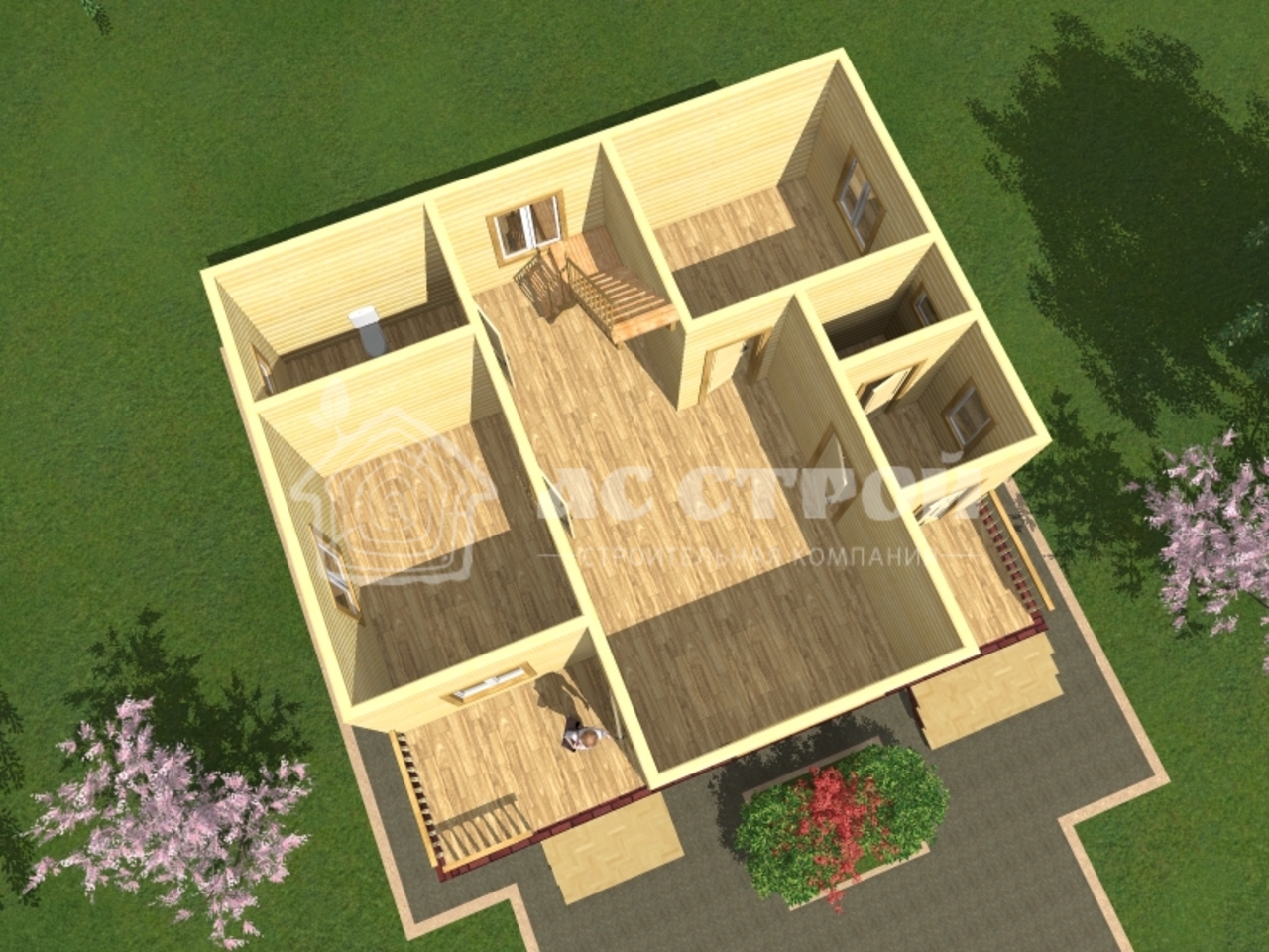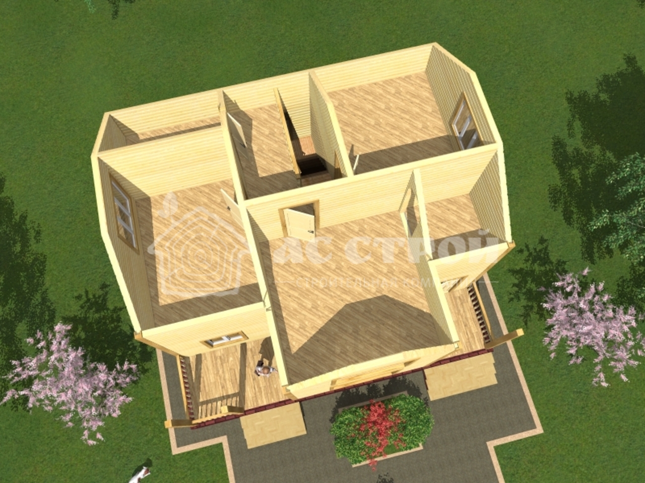 | Стены 1 этажа | Профилированный (строганный) брус (140х140 мм. / 140х190 мм.) естественной влажности. Тип бруса на выбор: полукруг (под блок-хаус) или прямой. Все проемы окон и дверей перевязываются. |