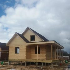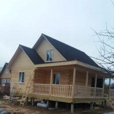 Закончили дом «Ильмень Д-32» 8,5х9м (под ключ), из профилированного бруса размерностью 140х140мм (Ширина 140 мм х Высота 140 мм, профилированный, естественной влажности, Тип бруса — прямой), на земельном участке, расположенном по адресу: посёлок Скреблово, Лужский район, Ленинградская область, Россия.