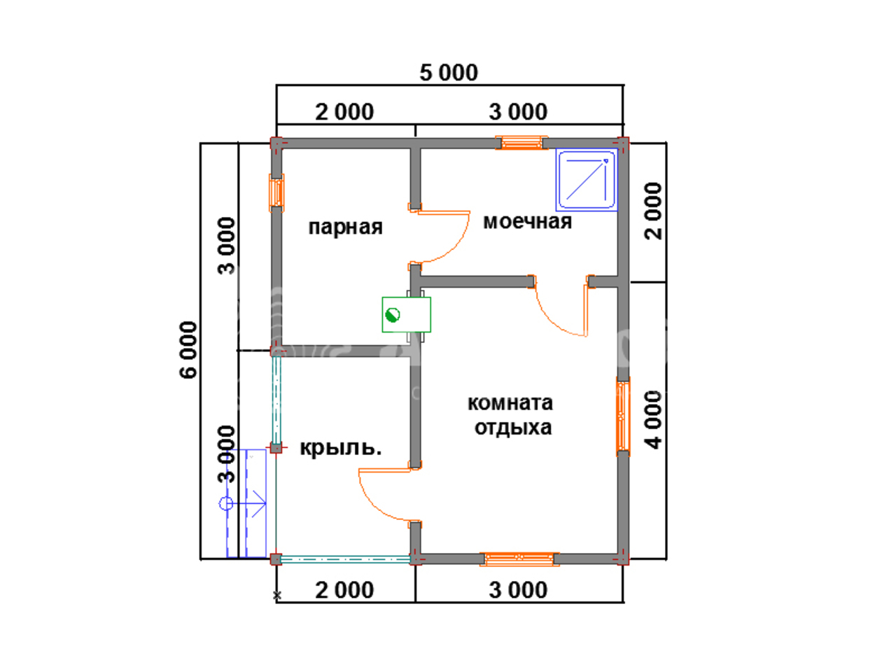 | Двери | Входная: металлическая утепленная (производство Россия) Банные: клиновые Обналиченные с отделкой откосов |