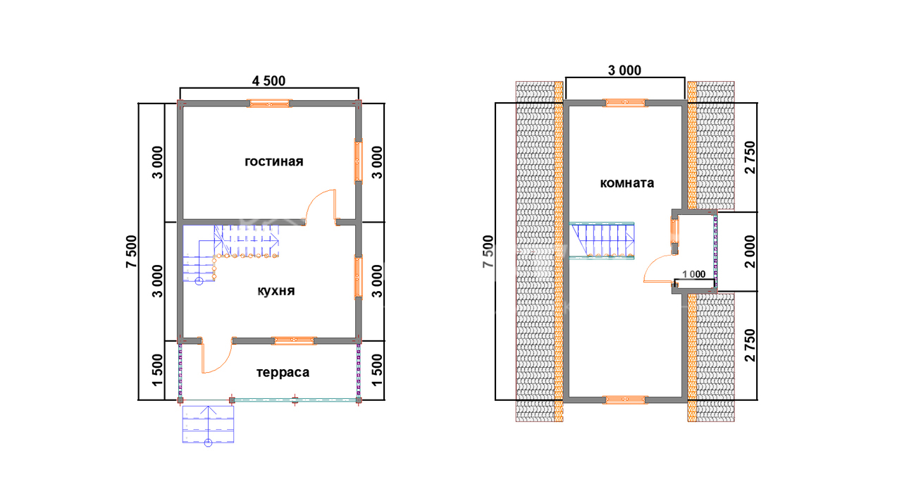 | Межэтажные перекрытия/подстропильные | Обрезная доска 40 х 150 мм(естественной влажности), с шагом 80 см(+/- 5см) |