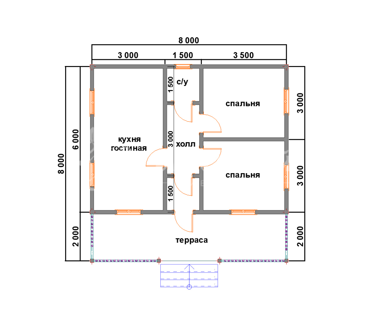 Размеры: 8x8 м  |  Площадь: 64 кв.м  |  Один этаж