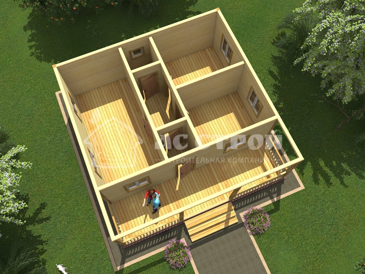 Сруб дома Профилированный (строганный) брус 90х140 мм (140х140 мм / 140х190 мм). Атмосферной сушки. Тип бруса на выбор: полукруг (под блок-хаус) или прямой. Все  проемы окон и дверей перевязываются.