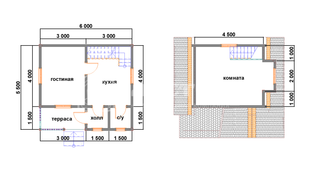 | Межэтажные перекрытия/подстропильные | Обрезная доска 40 х 150 мм(естественной влажности), с шагом 80 см(+/- 5см) |