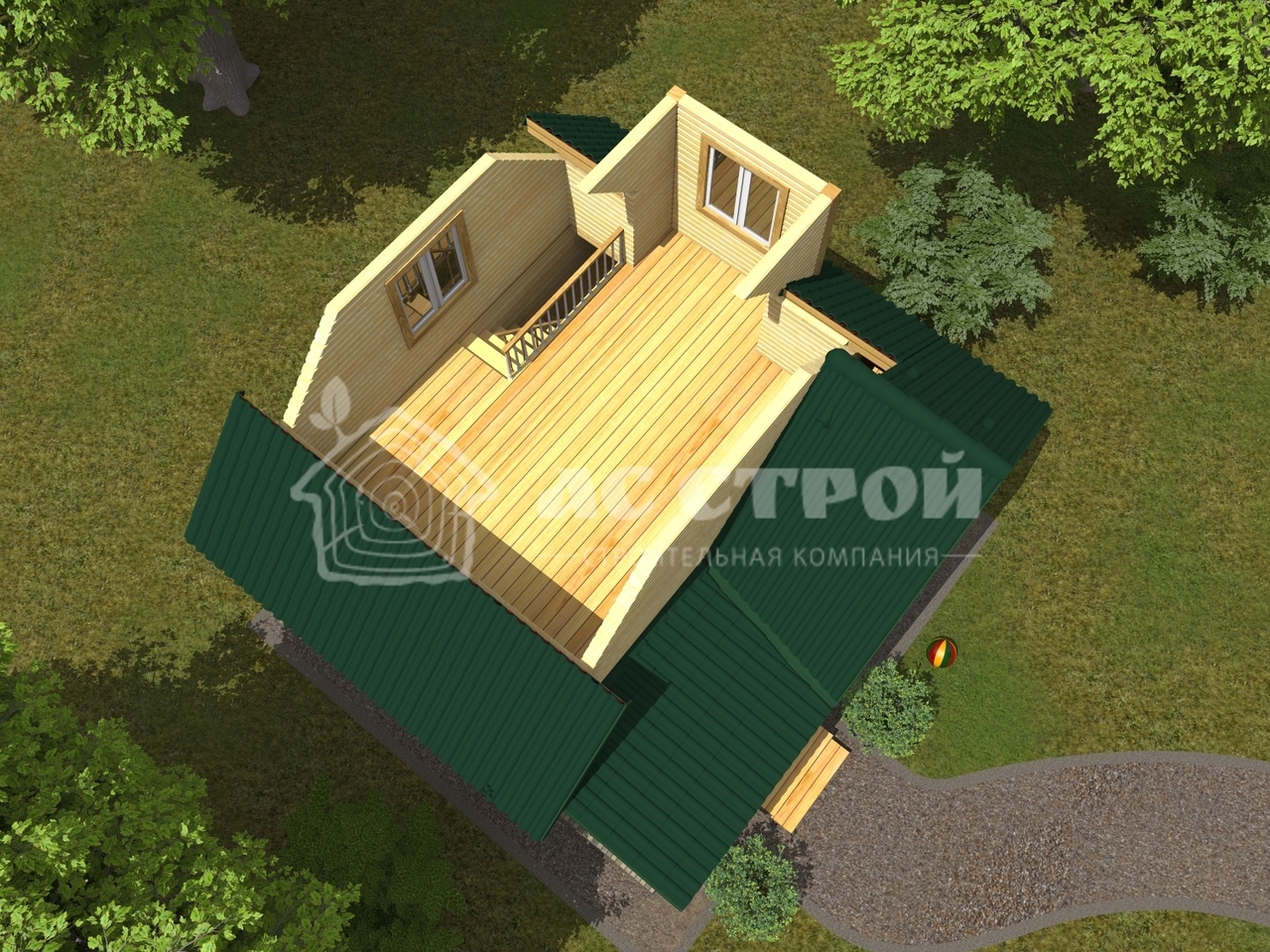 | Терраса | Устанавливаются столбы с усадочными лифтами (домкратами), перила с плоскими балясинами. Потолок зашивается хвойной вагонкой (класса А, В) камерной сушки |