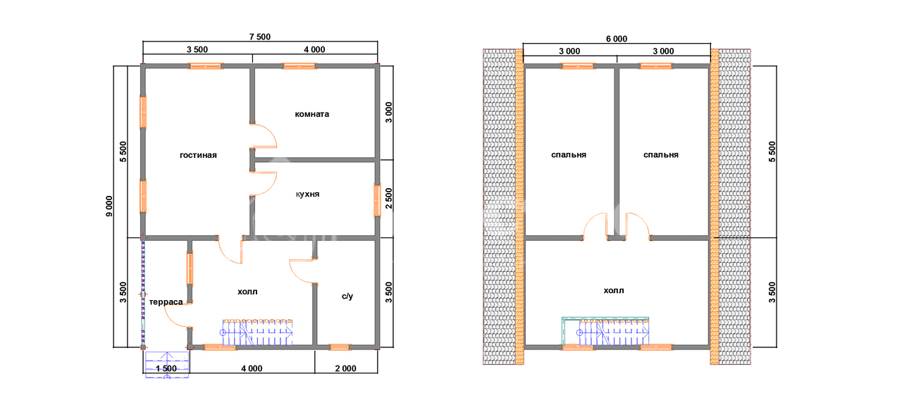 | Сруб дома | Профилированный (строганный) брус 90х140 мм (140х140 мм / 140х190 мм). Атмосферной сушки. Тип бруса на выбор: полукруг (под блок-хаус) или прямой. Все проемы окон и дверей перевязываются. |
