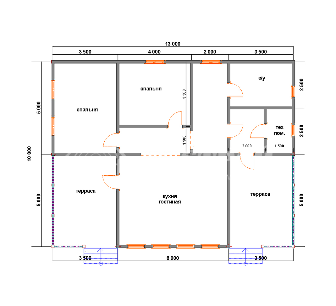 | Уменьшение шага половых лаг, стропильной системы и межэтажного перекрытия на 0,6 м. | 48 500 руб. |