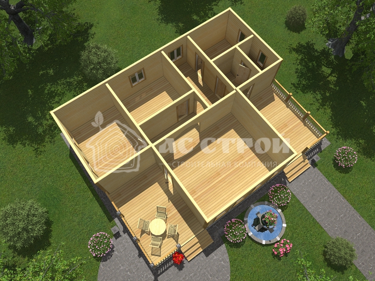 | Обвязка | Не строганный брус 150х150 мм (200x150 мм) естественной влажности |