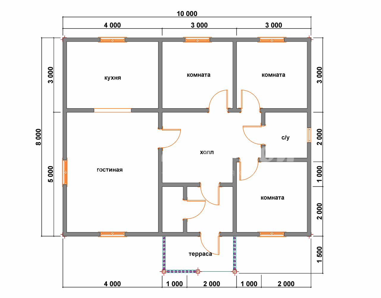 | Сруб дома | Профилированный (строганный) брус 90х140 мм (140х140 мм / 140х190 мм). Атмосферной сушки. Тип бруса на выбор: полукруг (под блок-хаус) или прямой. Все проемы окон и дверей перевязываются. |