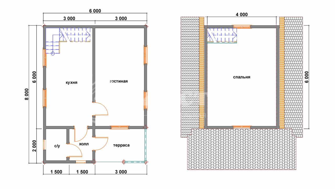 | Межэтажные перекрытия/подстропильные | Обрезная доска 40 х 150 мм(естественной влажности), с шагом 80 см(+/- 5см) |