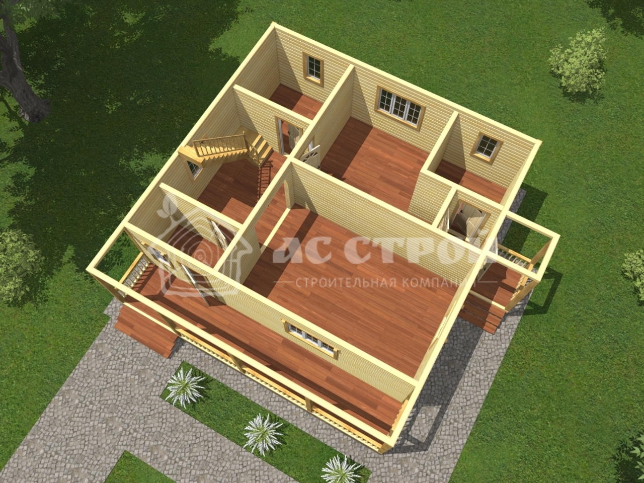 | Сруб дома | Профилированный (строганный) брус 90х140 мм (140х140 мм / 140х190 мм). Атмосферной сушки. Тип бруса на выбор: полукруг (под блок-хаус) или прямой. Все проемы окон и дверей перевязываются. |