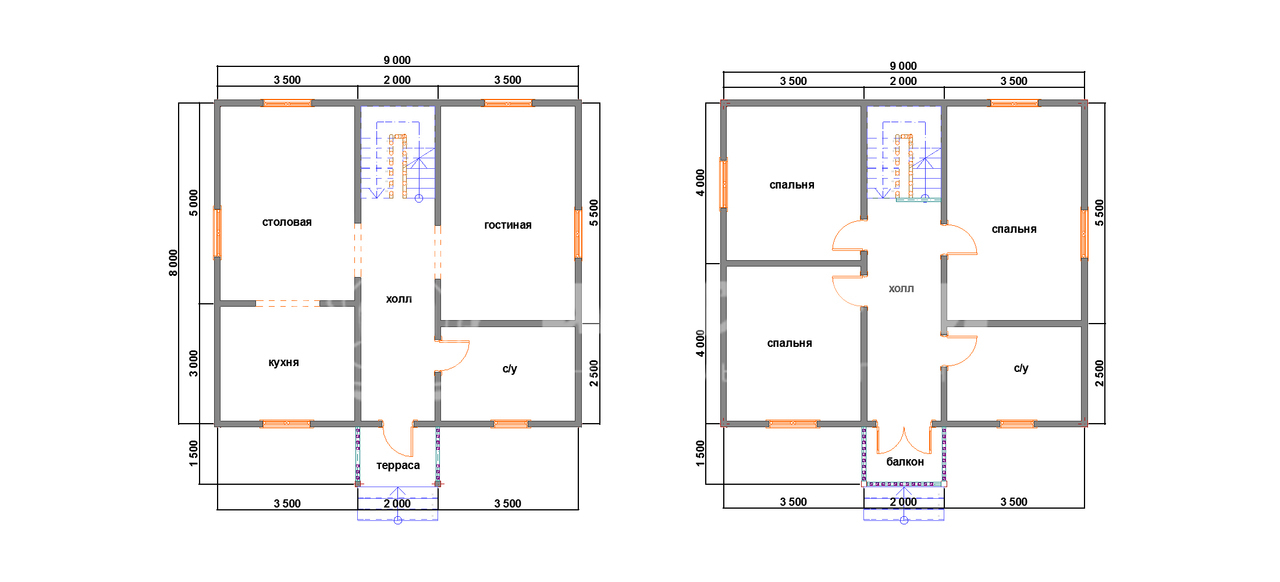 | 2-ой этаж | Профилированный (строганный) брус (140х140 мм / 190x140 мм). Атмосферной сушки. Тип бруса на выбор: полукруг (под блок-хаус) или прямой |