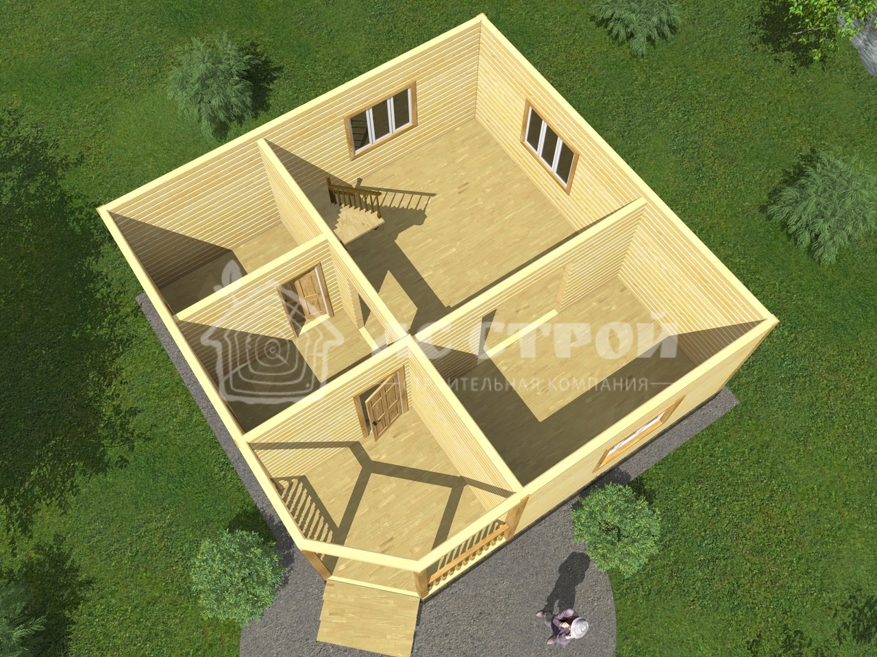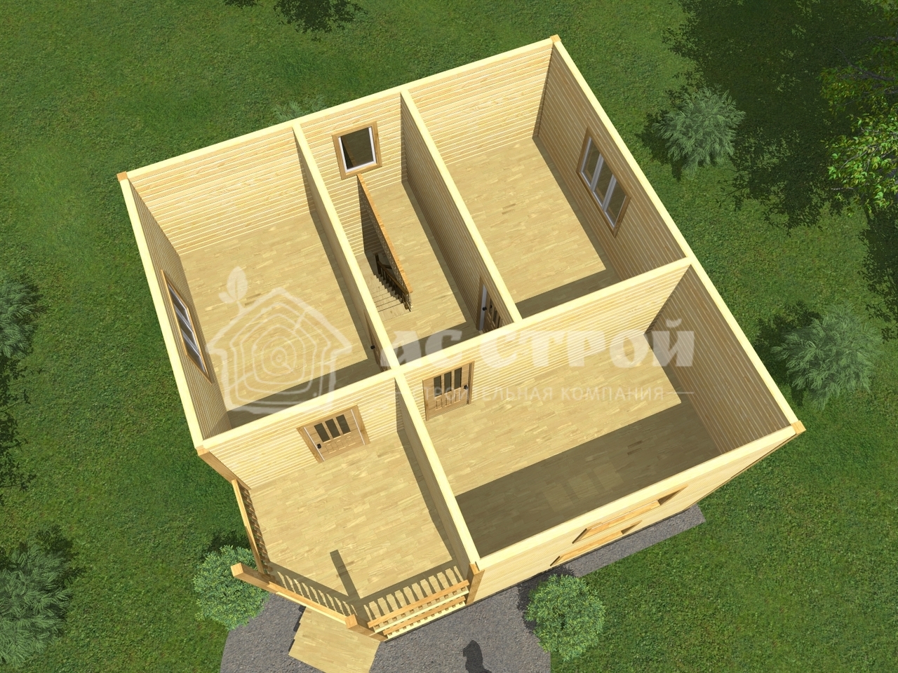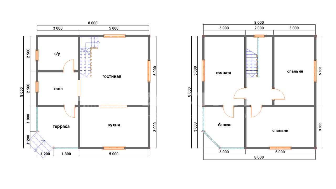 | 2-ой этаж | Профилированный (строганный) брус (140х140 мм / 190x140 мм). Атмосферной сушки. Тип бруса на выбор: полукруг (под блок-хаус) или прямой |