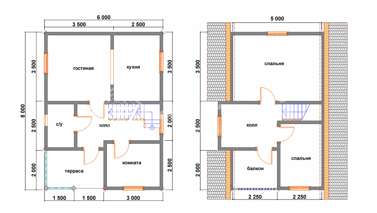| Перегородки мансарды (указаны в проекте) |