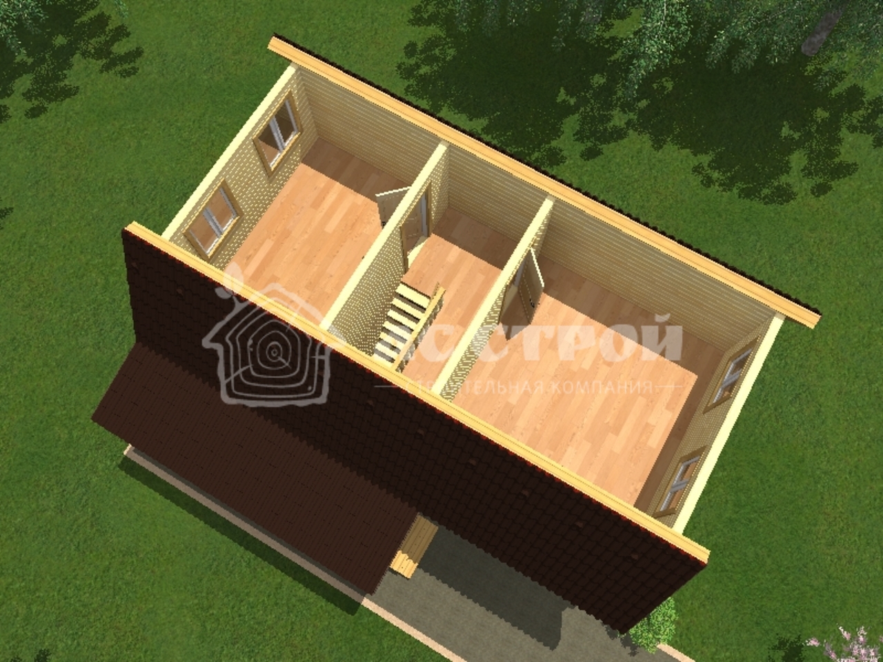 Сруб дома Профилированный (строганный) брус 90х140 мм (140х140 мм / 140х190 мм). Атмосферной сушки. Тип бруса на выбор: полукруг (под блок-хаус) или прямой. Все  проемы окон и дверей перевязываются.