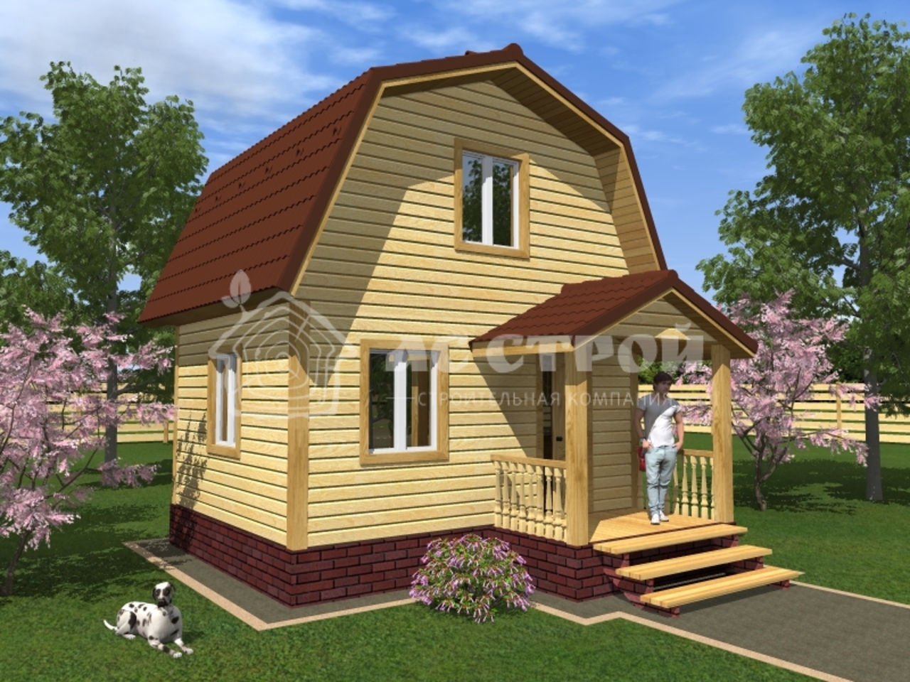 | Окна | Деревянные имитация стеклопакета с двойным остеклением: 1,0х1,2 м , обналиченные с отделкой откосов. Комплектуются фурнитурой. Над окнами устанавливаются отливы. |