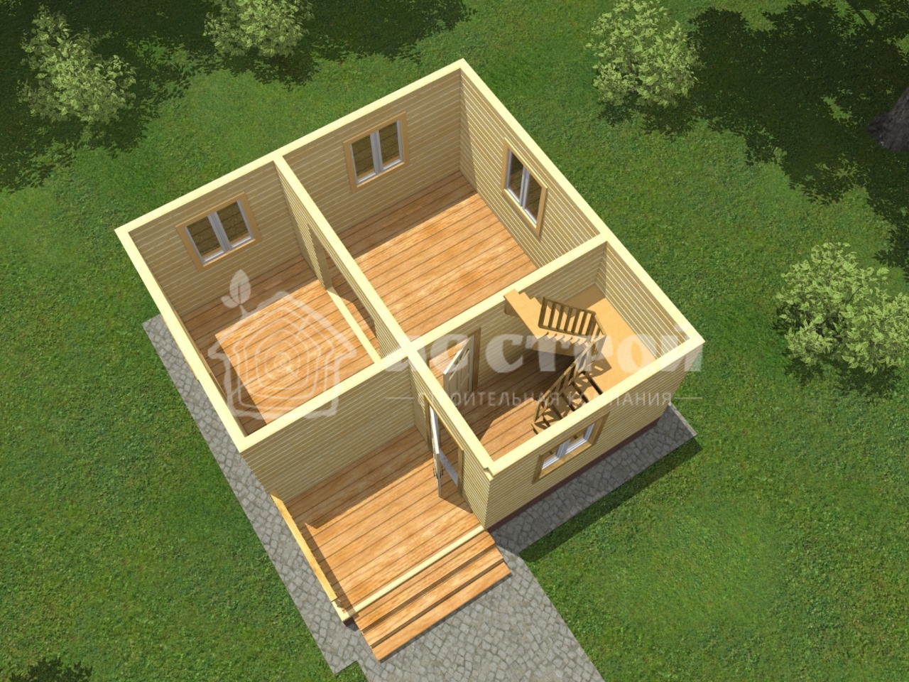 | Окна | Деревянные имитация стеклопакета с двойным остеклением: 1,0х1,2 м., обналиченные с отделкой откосов. Комплектуются фурнитурой. Над окнами устанавливаются отливы. |