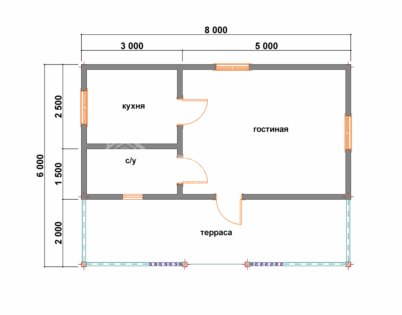 | Проемы окон и дверей | Устанавливаются деревянные направляющие (ройки) |