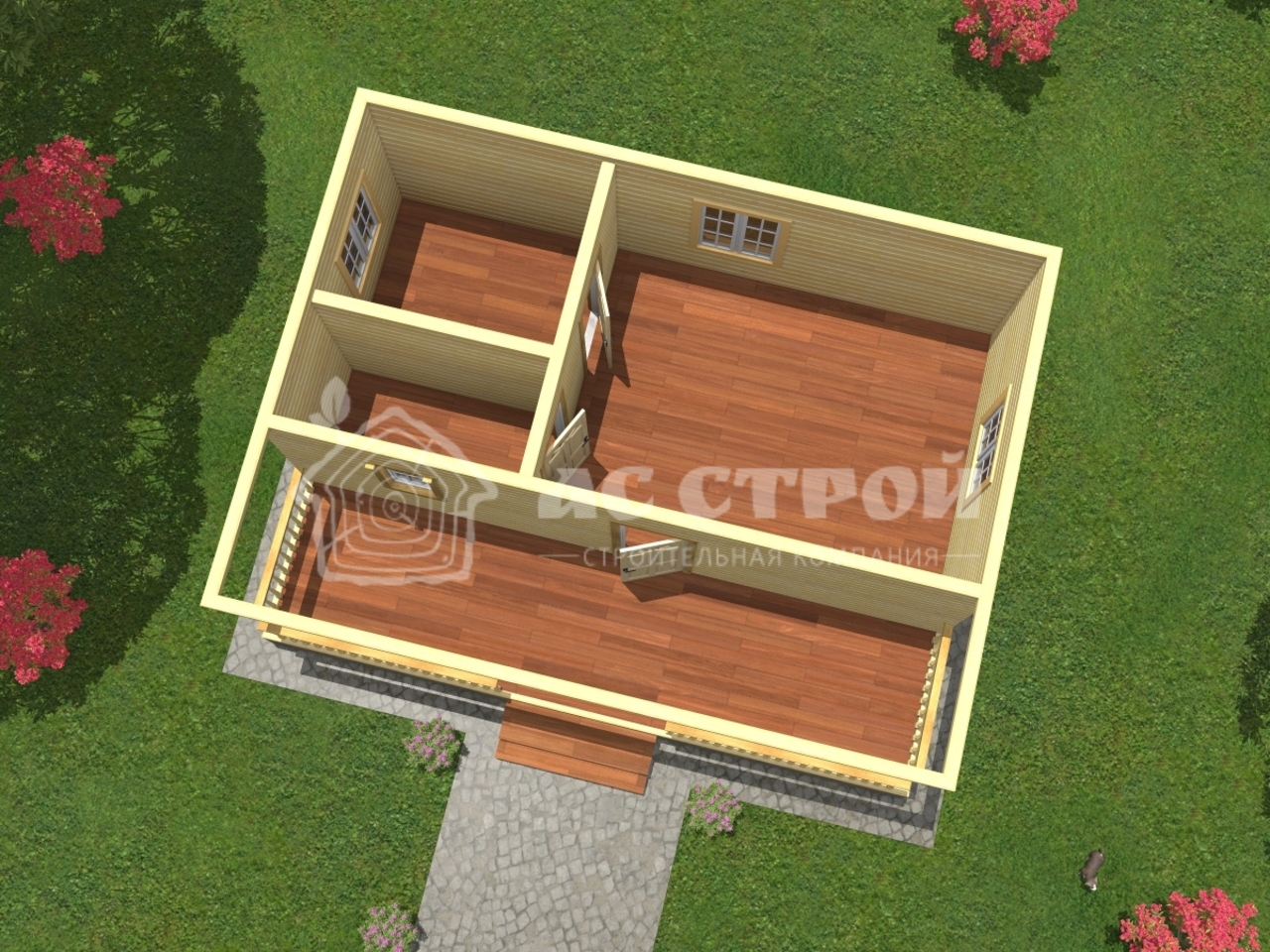 | Сруб дома | Профилированный (строганный) брус 90х140 мм (140х140 мм / 140х190 мм). Атмосферной сушки. Тип бруса на выбор: полукруг (под блок-хаус) или прямой. Все проемы окон и дверей перевязываются. |