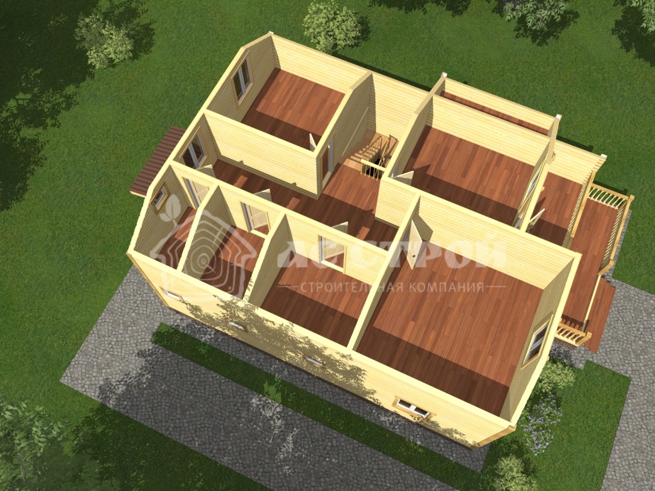 | Стены 1 этажа | Профилированный (строганный) брус (140х140 мм. / 140х190 мм.) естественной влажности. Тип бруса на выбор: полукруг (под блок-хаус) или прямой. Все проемы окон и дверей перевязываются. |