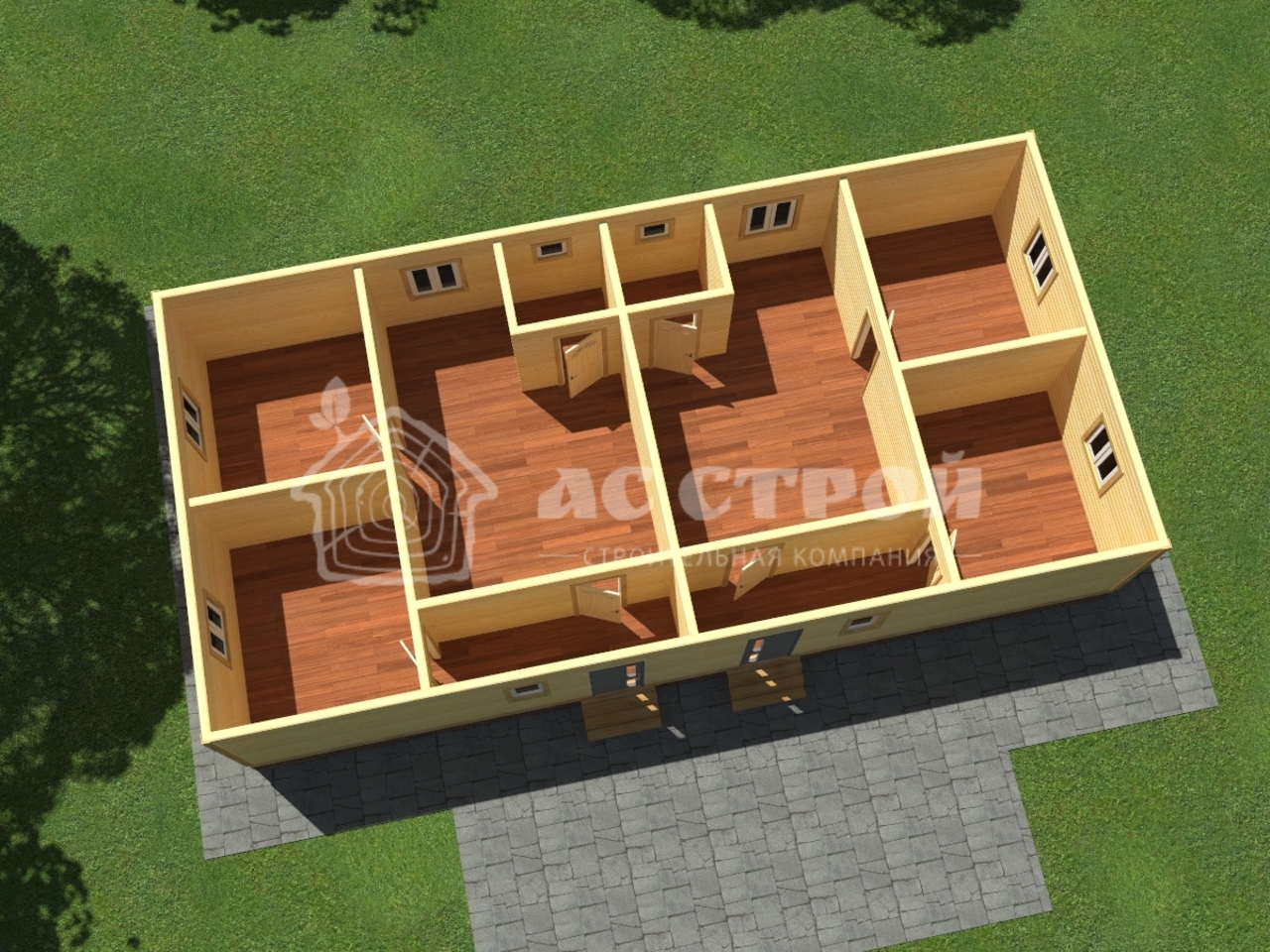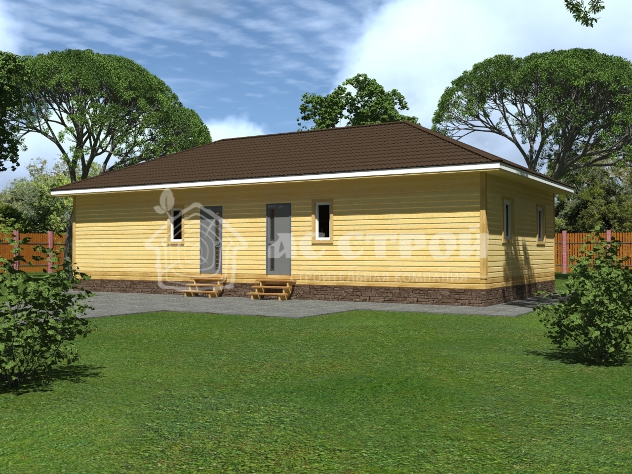 | Сруб дома | Профилированный (строганный) брус 90х140 мм (140х140 мм / 140х190 мм). Атмосферной сушки. Тип бруса на выбор: полукруг (под блок-хаус) или прямой. Все проемы окон и дверей перевязываются. |