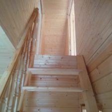 Лестница: с приступком, одномаршевая, устанавливаются ступени, перила с точеными балясинами.