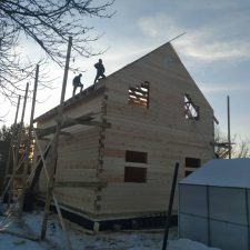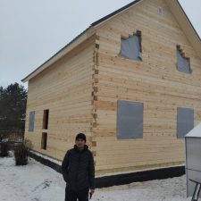 Закончили дом «Индивидуальный проект» 8,5х6м (под усадку), из профилированного бруса размерностью 140х140мм (Ширина 140 мм х Высота 140 мм, профилированный, естественной влажности, Тип бруса — прямой, на земельном участке, расположенном по адресу: СНТ Март, деревня Чупряково, Одинцовский городской округ, Московская область, Россия.