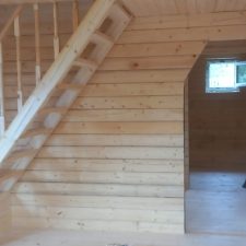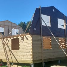 Закончили «Ладога Д-12 с изменениями Заказчика» 8,5х9м. (под ключ), из профилированного бруса размерностью 140х140мм. (ширина 140 мм. х высота 140 мм., профилированный, естественной влажности, тип бруса — прямой, на земельном участке, расположенном по адресу: д. Боровая, Смоленская обл., Россия