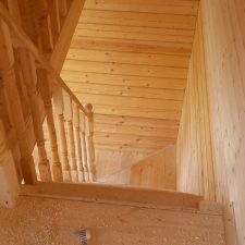 Лестница: с приступком, одномаршевая, устанавливаются ступени, перила с точеными балясинами.