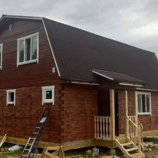 Покраска дома снаружи в 1 слой составом Pinotex, цвет сосна.