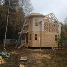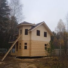 Закончили строительный объект «Ладва Д-1» 6х7м. (под усадку), первый этаж из профилированного бруса размерностью 140х140мм. (ширина 140 мм. х высота 140 мм., профилированный, естественной влажности, тип бруса – прямой), полуторный этаж в каркасном исполнении, на земельном участке, расположенном по адресу: рабочий посёлок Монино, городской округ Щёлково, Московская область, Россия