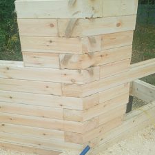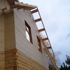 Полуторный этаж обшивается хвойной вагонкой (класс А-В, камерной сушки), толщиной 12-16 мм.